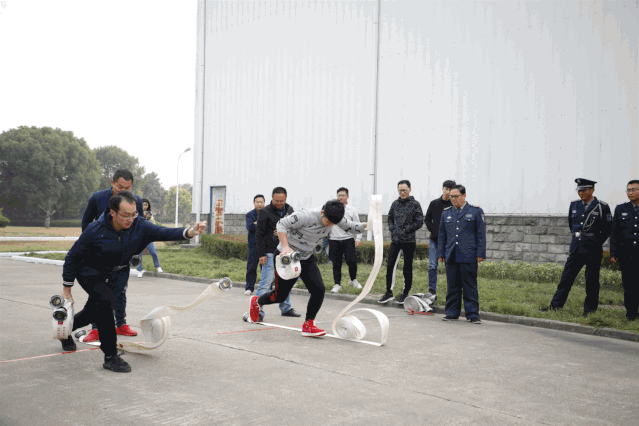 消防競賽分為兩項:“50米雙盤水帶連接”、“100米干粉滅火器撲滅油桶火”,主要考察員工處理突發(fā)事故的應(yīng)急反應(yīng)速度,及消防栓、滅火器的使用?;顒娱_始前,由安全生產(chǎn)部副經(jīng)理徐從磊宣讀競賽規(guī)則,比賽共分為10個組,兩兩對決,最后按時長進(jìn)行排名。比賽過程中,吸引了眾多員工駐足觀看、吶喊加油,參賽選手積極踴躍,表現(xiàn)出了強(qiáng)烈的消防安全責(zé)任意識。