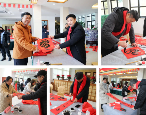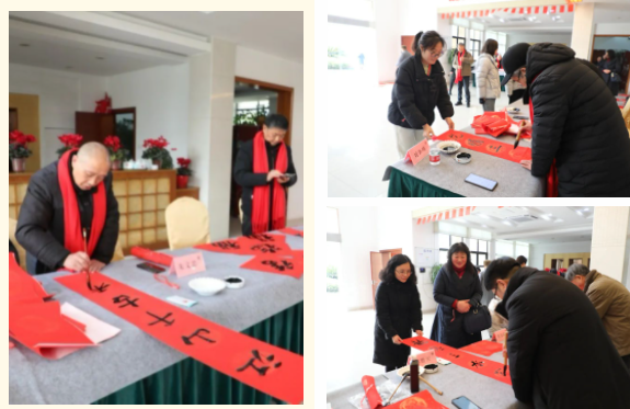 每逢春節(jié),無(wú)論城市還是鄉(xiāng)村,家家戶(hù)戶(hù)都要精選福字、春聯(lián)張貼于門(mén)上,以此辭舊迎新。從“千門(mén)萬(wàn)戶(hù)除舊歲,總把新桃換舊符”到“天增歲月人增壽,春滿(mǎn)乾坤福滿(mǎn)門(mén)”,人們用各種美好的祝福語(yǔ)表達(dá)對(duì)來(lái)年的美好渴望。為弘揚(yáng)中華傳統(tǒng)文化,踐行社會(huì)主義核心價(jià)值觀,進(jìn)一步豐富蘇中人的精神文化生活,營(yíng)造歡樂(lè)喜慶、文明祥和的新春佳節(jié)氛圍,1月29日,姜堰區(qū)書(shū)法家協(xié)會(huì)走進(jìn)蘇中藥業(yè)集團(tuán)開(kāi)展“’龍騰三水’迎新春、送祝?!被顒?dòng),為企業(yè)員工送上美好的龍年祝福。