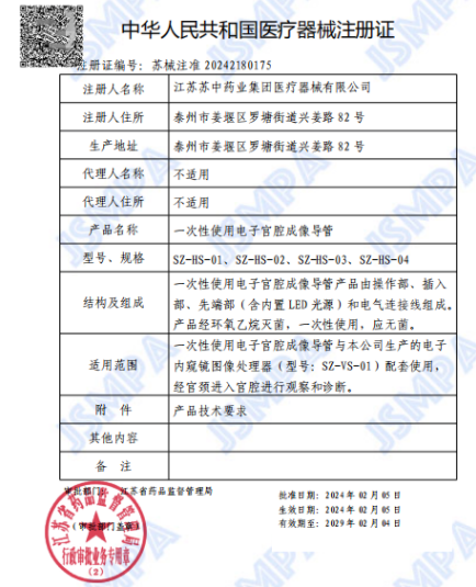 2024年新春伊始,繼取得三款一次性使用電子內(nèi)窺鏡產(chǎn)品注冊證后,蘇中器械又喜獲一次性使用電子宮腔鏡注冊證。