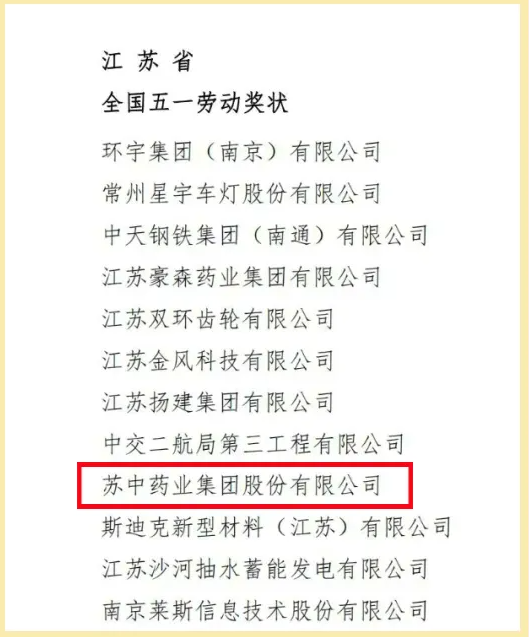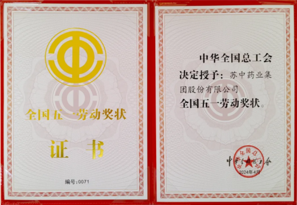 近日,2024年慶?!拔逡弧眹H勞動(dòng)節(jié)暨全國五一勞動(dòng)獎(jiǎng)和全國工人先鋒號(hào)表彰大會(huì)在北京舉行,蘇中藥業(yè)集團(tuán)股份有限公司榮獲“全國五一勞動(dòng)獎(jiǎng)狀”。
