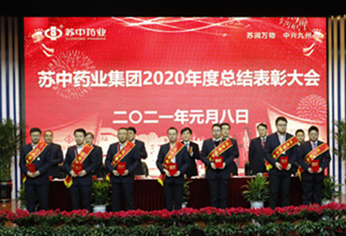 總結(jié)促提升,聚力再揚(yáng)帆。元月8號上午,蘇中藥業(yè)集團(tuán)2020年度總結(jié)表彰大會隆重召開。會議表彰獎勵了10位集團(tuán)勞模、45個先進(jìn)集體和153名先進(jìn)個人。集團(tuán)領(lǐng)導(dǎo)班子、主管以上干部及受表彰人員歡聚一堂,總結(jié)2020,謀劃2021。秦林副總經(jīng)理主持會議,唐海濤副總經(jīng)理宣讀表彰決定并主持頒獎。