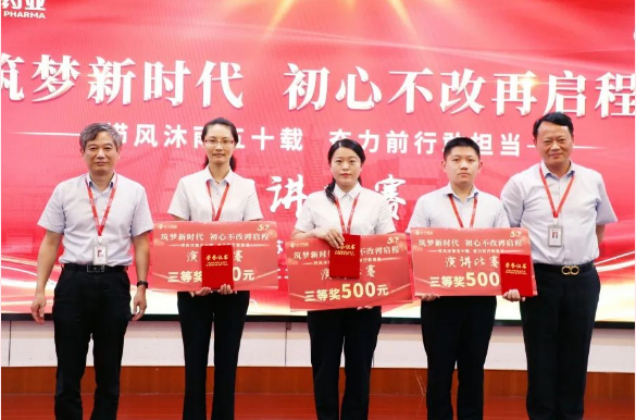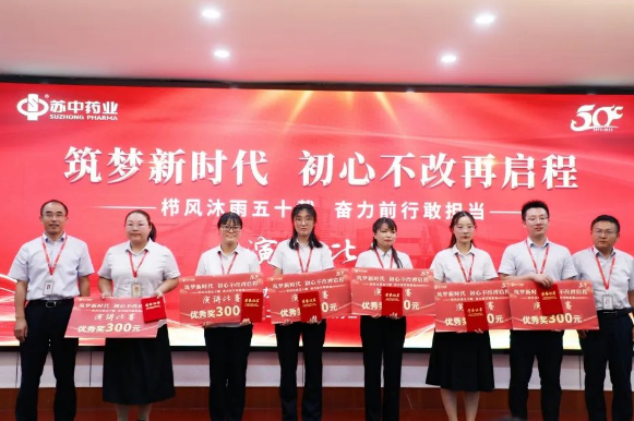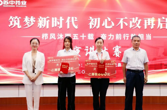 經(jīng)過激烈角逐,辦公室楊文娟演講的《是榮譽,更是責(zé)任》榮獲一等獎;蘇中生物沈雨娟演講的《蘇中印象》、人力資源管理部許丹演講的《五十年》榮獲二等獎;信息技術(shù)部景濤演講的《櫛風(fēng)沐雨五十載,奮力前行敢擔(dān)當(dāng)》、集團研究院種雅慧演講的《青春逢盛世,奮斗正當(dāng)時;熱愛有你,蘇中藥業(yè)有我》、人力資源管理部王虹演講的《我的蘇中緣》榮獲三等獎。