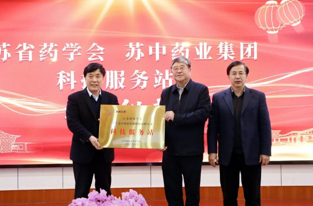 江蘇省科學(xué)技術(shù)協(xié)會副主席馮少東為江蘇省藥學(xué)會&蘇中藥業(yè)集團(tuán)“科技服務(wù)站”授牌
