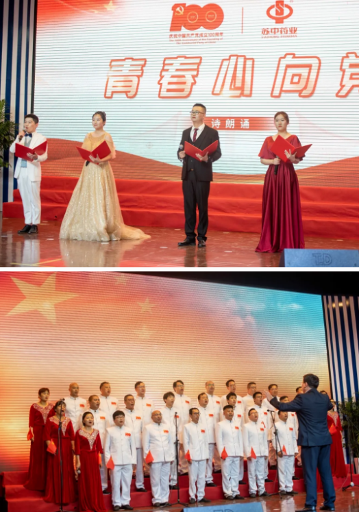 紅色革命歌曲串燒、三句半《百年黨慶話蘇中》、非洲鼓《我愛你中國(guó)》、舞蹈《大中國(guó)》、小品《我想入黨》、詩(shī)朗誦《青春心向黨》等節(jié)目輪番上演,奏響時(shí)代強(qiáng)音、對(duì)黨的忠誠(chéng),展現(xiàn)了蘇中人不忘初心、牢記使命的愛黨愛國(guó)情以及努力奮進(jìn)精神風(fēng)貌。