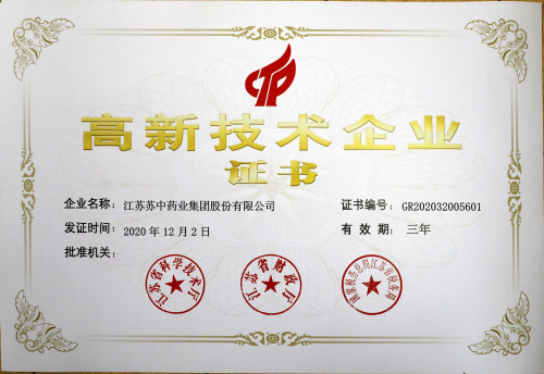 蘇中藥業(yè)集團再次獲批“國家高新技術(shù)企業(yè)”
