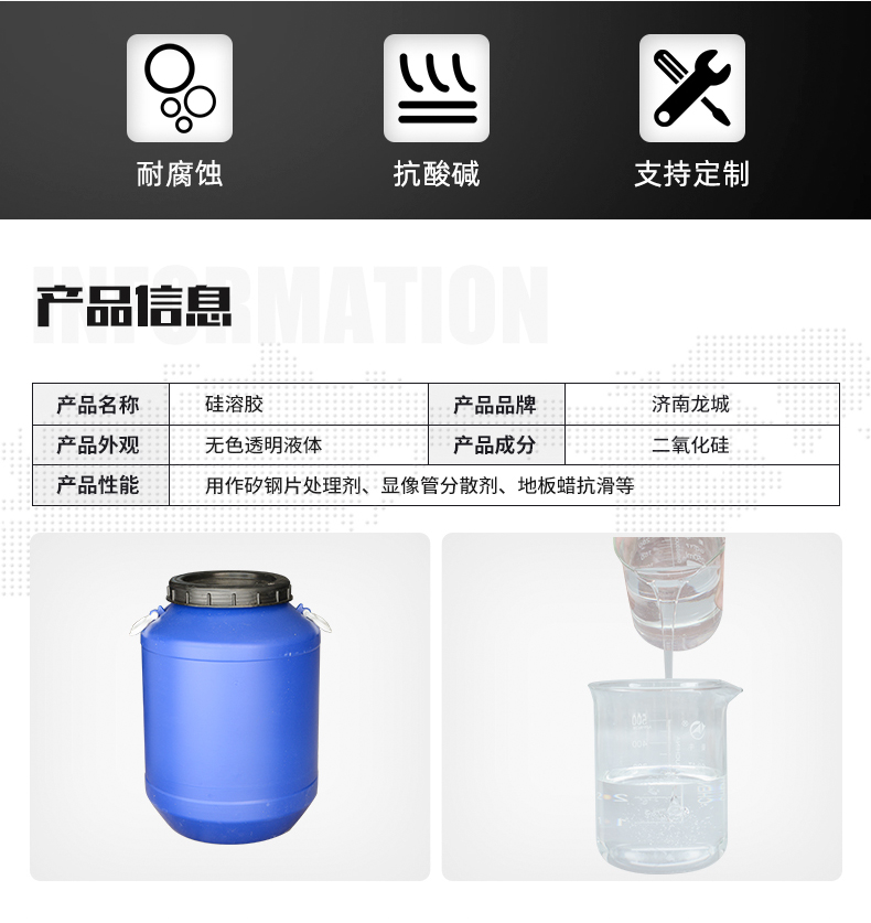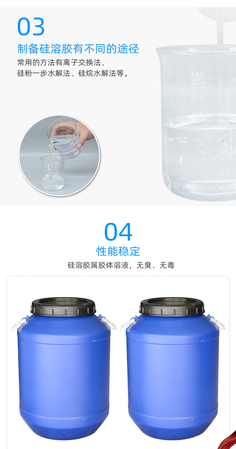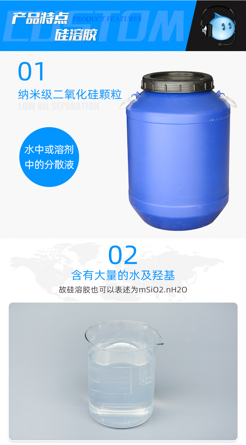 硅溶膠屬膠體溶液,無臭、無毒。分子式可表示為mSiO2·nH2O。